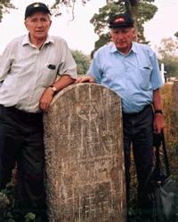 #dc-40: Brothers Leon Rubin & Victor Rubin at grandfathers Gravestone. "Dolhinov Delegation Tour 2002". |