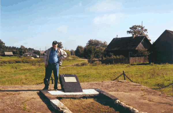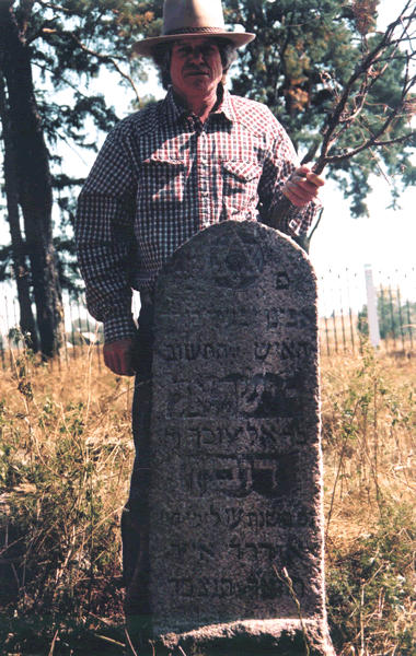 #dc-39:Michal Rubin at great-grandfather's Gravestone. "Dolhinov Delegation Tour 2002". |