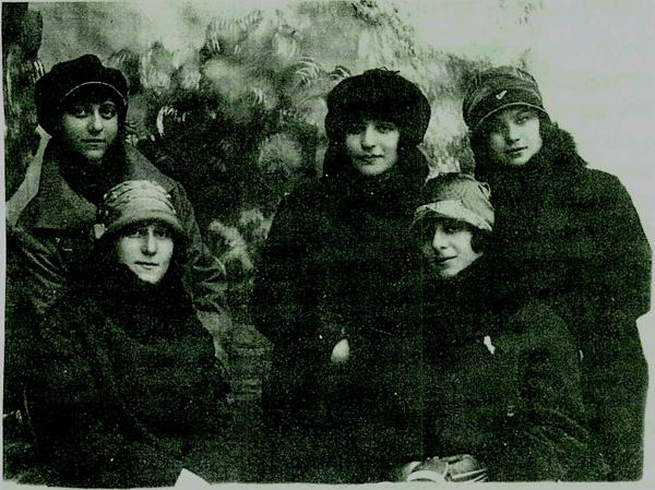 | Podberesky family c. 1902 LEFT: Ethel Farberman Gordon – married to Max Podberesky "Gordon" . Center, standing: Philip Podberesky "Gordon" who left for America c.1910 and married Ethel Farberman's sister Katie. The two sisters were from Dolhinov. The brothers and sisters were also cousins. Right, standing: Dishke-Libby nee Podberesky who married Izadore Levine (also a cousin). She was shot in the leg during protests/strikes in NYC for ladies garment workers. Seated: Ester Genya – 2nd wife of Zev Wolf Podberesky . His first wife, Basha-Ita Danischevsky (also known as "Alte" because she was the sole survivor of 11 children who died as infants) died at approximately age 33, shortly after my grandmother (far right) was born). Center seated: my great grandfather Zev Wolf Podberesky (he was born in Vishneveh). When all of the children except Rivka-Baila (my grandmother) had left for America, he and Rivka Baila and Ester Genya were (living in Ilya) caught in the ravages of WWI and the Russian Revolution and became stateless refugees. Esther Genya had a farm near Smargon and during the Russian Revolution or WW1 went to gather food there and was never heard from again. Zev Wolk and Rivka Baila were forced from their home in winter. During that time he died of pneumonia and she was left alone. She wandered for 4 more years before walking to to the free port of Danzig and coming to America. Far Right: my grandmother, Rivka-Baila (she married Joseph Schuster from Bozalia, Ukraine) Note: They all dropped the name Podberesky and took the name "Gordon" upon coming to America. For more pictures and information go to; http://www.eilatgordinlevitan.com/volozhin/vol_pages/vollinksframe.html Zane Buzby |