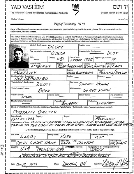 #dlot-11 Golda Dlot. Perished in Postavy during the holocaust. |