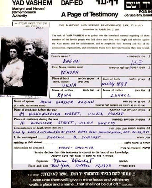 #kgn-19: Esther Kagan nee Finkel was born in Rakow, Poland to Shalom and Tzvia. She was a housewife. Prior to WWII she lived in Kurzeniec, Poland. Esther was murdered in the Shoah. This information is based on a Page of Testimony submitted by her daughter, Tzvia Even Shoshan |