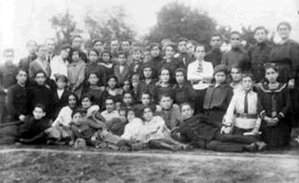 City Yanova Photographer n/a Description Portrait of students and teachers of the Jewish night school of the Cultural League: (among those photographed) teacher Tserne Yafe, Khane Gloz-Lipmanovitsh, the poet Hashem Bloshteyn and two of its founders, Berl Malakh and Khayim Shteyn. |