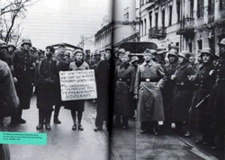 #min-os_32: German soldiers parade three young people through Minsk before their execution. The placard reads: "We are partisans who shot at Germans soldiers." Minsk, Soviet Union, October 26, 1941. |