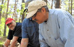 They set up the equipment, using pins on the forest floor to detect aberrations below.