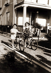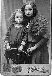 Frajda and Gina Fajgenbaum, Warsaw, 1915. "I was so ashamed of this photo... Next to beautiful Frajda - ugly me, my panties sticking out, you could see my underwear. Now, it's a remembrance of my sister, who was killed in the ghetto." Eugenia Gnoinska, Warsaw