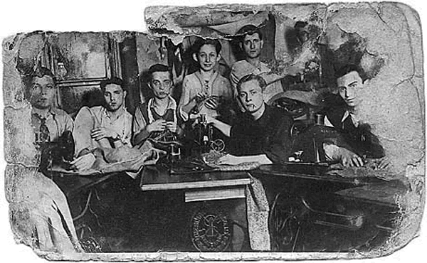 Sitting on the floor: 1. - Fridman, 2. - Lutka Szerman (she was in a Russian camp, died in Israel), 3. Balbina Szulc (also survived in the Soviet Union, and went to Israel), 4. - Gina Fajgenbaum - that's me, 5. - Herszon, 6. - Szpajzman, 7. - Basia SzuIc, 8. - another of the Fridman sisters, 11. - Irena Raisking, 12. - Irena's husband, Horensztajn (lying on the left). Marek Bober (lying on the